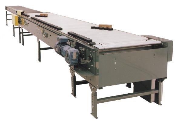 Another slat band model is the ProSort 131high speed sortation conveyor. It is capable of efficiently sorting small and fragile items or groups of items. This conveyor was designed specifically for the high speed sortation of items that may be too small for conventional shoe sorters. The conveyor carries products on high strength, anodized aluminum slats. When the products reach predetermined location, divert shoes are used to push products onto a take-away line. This conveyor features high sort rates.