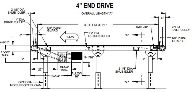 这些输送机有1/2马力电机作为标准,最大2马力。他们是标准的端驱动器,但可选的中心驱动器提供的好处是可逆的。访问我们的网站,查看我们的在线商店,或联系我们的详细规格的所有产品。