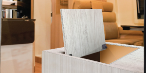 For top-opening lids, theHG-JHS9andHG-JHS11damper hinge sets have aself-openfunction for a majestic reveal. They are intended for inset lids and have an opening angle of 105 degrees. A touch latch* may be used to keep the lid closed and released when pressed. The HG-JHS9 hinges are surface-screw-fixed with the option for side or under panel mounting.