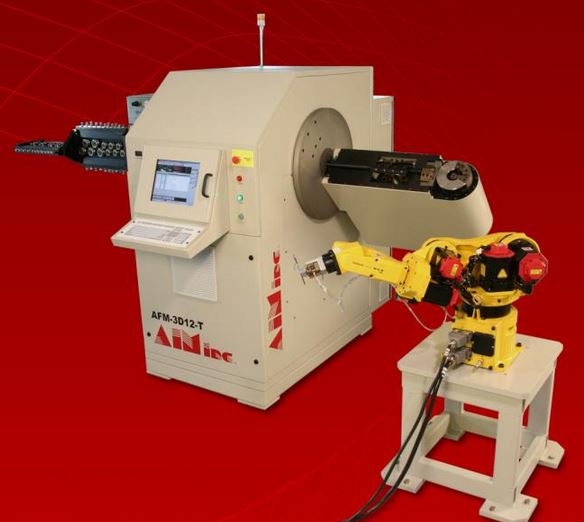 Our CNC 3D machines have wire diameter ranges from 2mm to 16mm. We offer the AccuForm Modular series from AIM Inc. that features a graphic simulation to preview programmed moves before production, concurrent operations for programming during operations, and productions statistics for estimating costs and scheduling. They utilize a turret head and three rotary satellite benders to allow for press brake bends, eye-loops, tube forming, off plane bending, and more. Our double headed benders allow 6 moves and directions to be programmed for each head. Visit our website forproduct catalogues from our manufacturersand detailed information on all the different types of machines we provide.