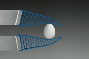 新的DHAS自适应夹持手指是费斯托仿生学项目的成果,旨在发展先进的模仿自然的产品.它们采用了鳍射线效应,这是基于鱼尾的生理学原理,并赋予钳子轻柔处理小部件所需的灵活性。事实上,夹具的手指,由聚氨酯构成,可以适应工件轮廓安全,镊子一样的夹紧。移动元素结合了积极和基于摩擦的抓握原理,同时为轮廓表面提供了大的接触面积。