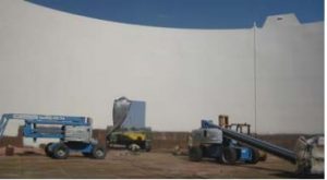 The project consisted of two open top/internal floater tanks with the sidewalls coated with Archco 400 high solids epoxy primer and then over coated with Archco 450, 100 per cent solids epoxy, glass-flaked filled lining. All coatings were sprayed with a 68:1 single leg airless unit. For this application, the Archco 450 sprayed 25 to 30 ml in one coat.