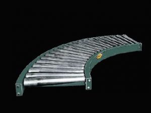 除了直线重力输送机,曲线提供平滑的产品流是可用的。如果需要,可以在弯曲部分添加护栏,以提供额外的产品保护。另一个可用的选择是锥形胎面辊,将保持产品的方向。
