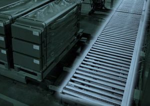 Hytrol’s Model 199-CRR live roller conveyor reliably moves items in environments where belt-driven live roller conveyors would not be suitable. The conveyor, available in 11 standard widths to match a variety of applications, is ideally suited for those applications where, for example, the parts may be oily, preventing belts from driving the rollers. It’s suitable for these environments because the rollers in the 199-CRR are positively driven with chains roll-to-roll and, therefore, the drive is not affected by oily conditions.