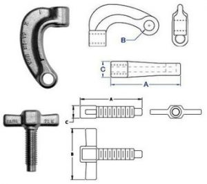 肯锻造可以供应锻c形夹在各种应用中使用。该公司的标准c型夹是ASTM A181镀锌碳钢,70级,有丝锥(UNC-2B)和螺纹(UNC-2A)两种。标准c型夹的直径从1/2英寸到3/4英寸,长度从3-9/32英寸到5-1/2英寸,厚度从25/32英寸到1-1/4英寸。