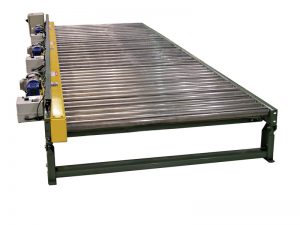 The conveyor has a 300-pound maximum load per linear foot of conveyor if supports are on 10-foot centres, and a maximum of 1,000 pounds if supports are on five-foot centres. The maximum unit load is 4,000 pounds per zone with four-inch roller centres, and #40 chain. Zones longer than six feet, however, may require an additional floor support depending on product load.