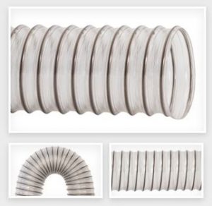 Constructed of polyurethane reinforced with bronzed wire helix, the hose offers many features that make it a top choice for use in the woodworking, metal fabrication, insulation blowing/removal, powder paint recovery, and food and beverage industries. No cements, glues, adhesives or secondary heat welds are used in the construction process for superior durability, while the materials that are used are acceptable for use in FDA and NSF applications. The hose is abrasion-, moisture- and UV-resistant, highly flexible and highly compressible. In addition, the hose is transparent, allowing users to easily locate blockages.